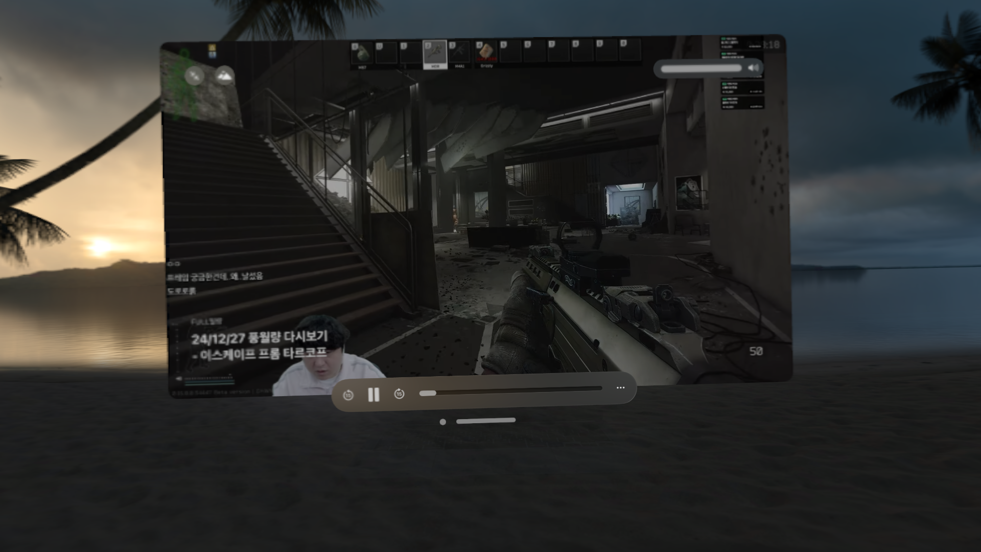 평소에도 일할 때나 게임할 때 유튜브 게임 영상을 틀어놓는 습관이 있고 개인적으로 퀘스트에서 유튜브 앱을 잘 사용하고 있었어서 비전프로에서도 기대했지만..아직까지 비전프로에 공식 유튜브 앱이 출시 되지 않았습니다.